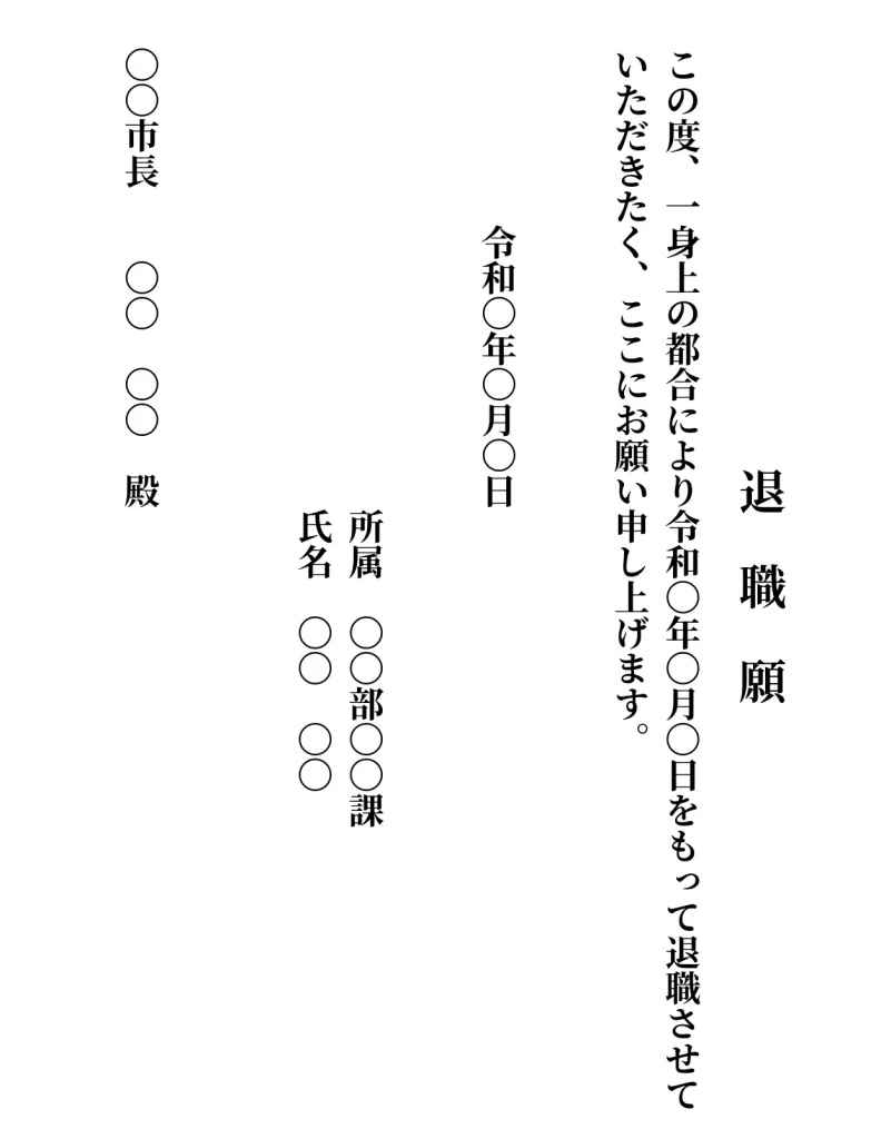 自治体ごとに退職願のフォーマットがあるはずなので、送ってもらうようにしてください。