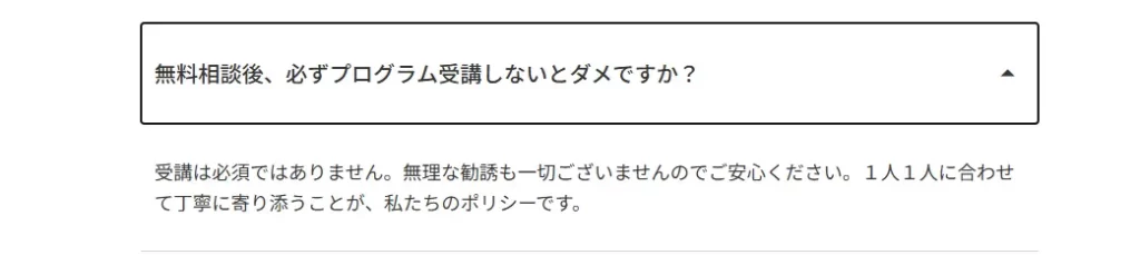 無料相談だけで終えても全く問題ありませんが、有料プログラムを受けてみたいと少しでも思った場合は、以下の内容は必ず確認しておいてください。